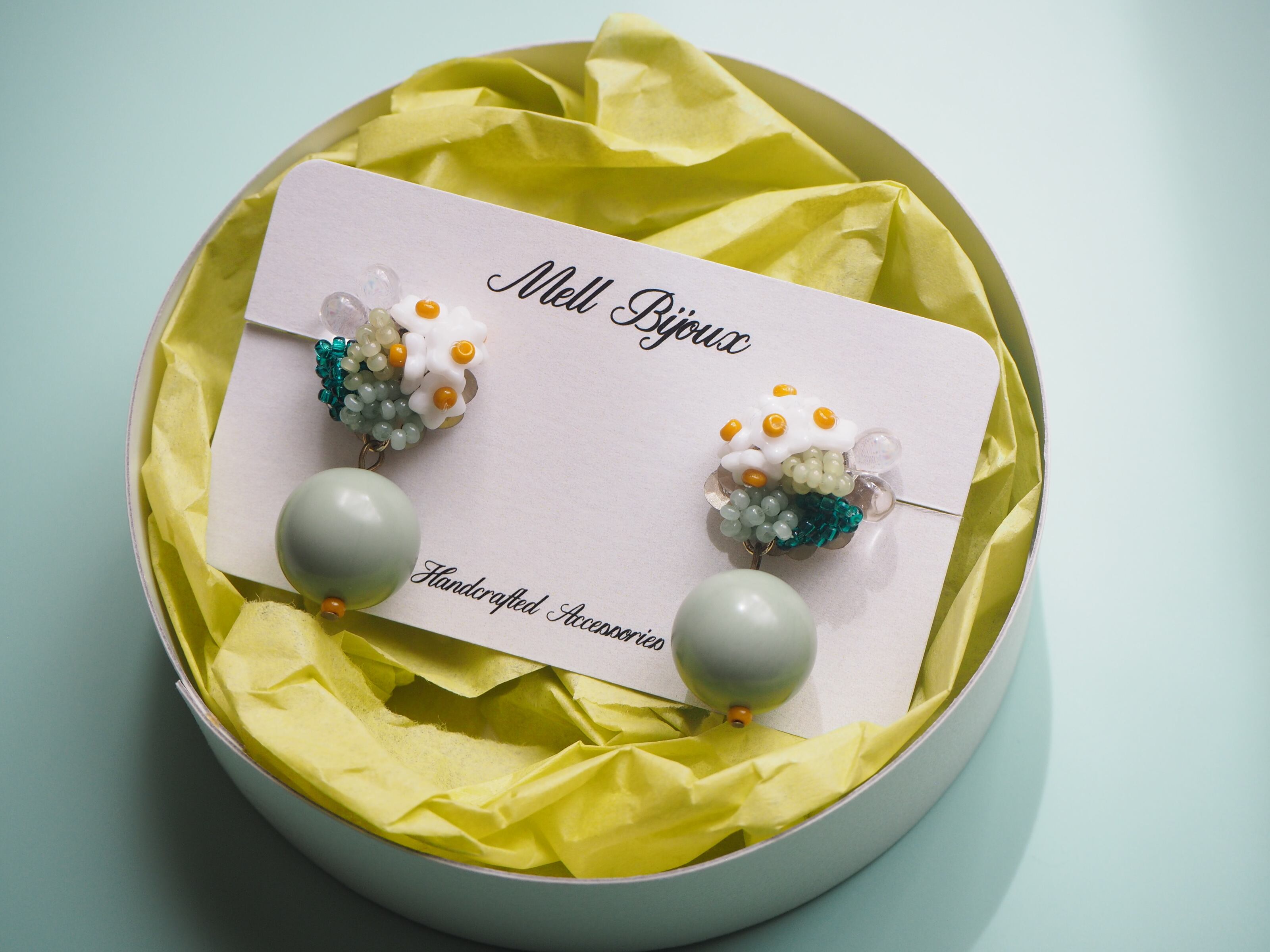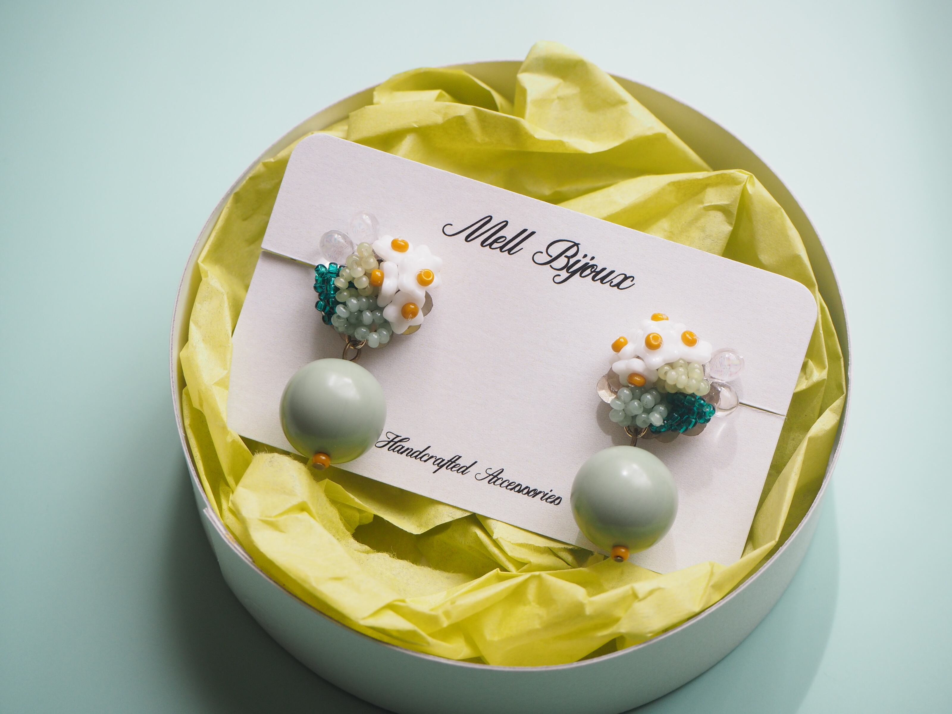 絶妙な色味のセージグリーンのぶら下がりパーツは